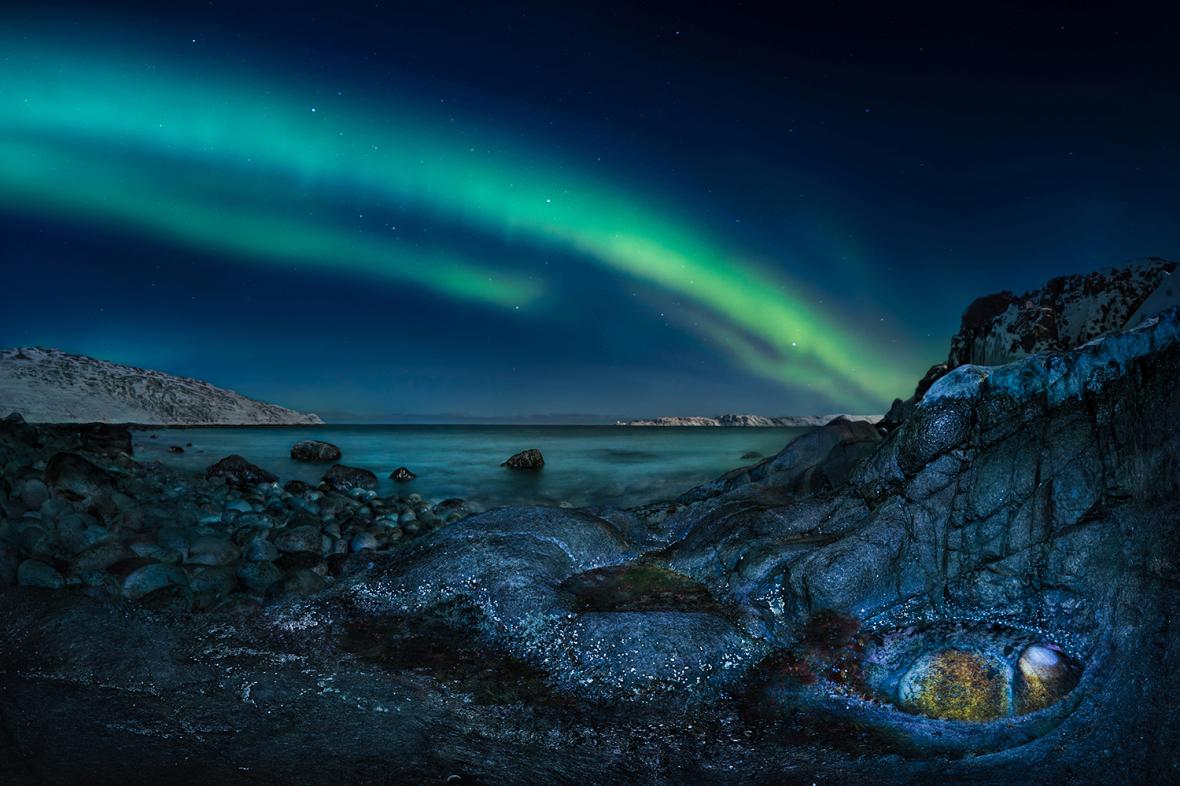 «Το Μάτι του Δράκου»: θέλοντας να δείξει πως τα συνηθισμένα πράγματα μπορούν να μεταμοφωθούν σε κάτι μαγικό κάτω από το Βόρειο Σέλας, η φωτογράφος διάλεξε και φώτισε τον βράχο και μετά περίμενε το σέλας να κάνει τα μαγικά του