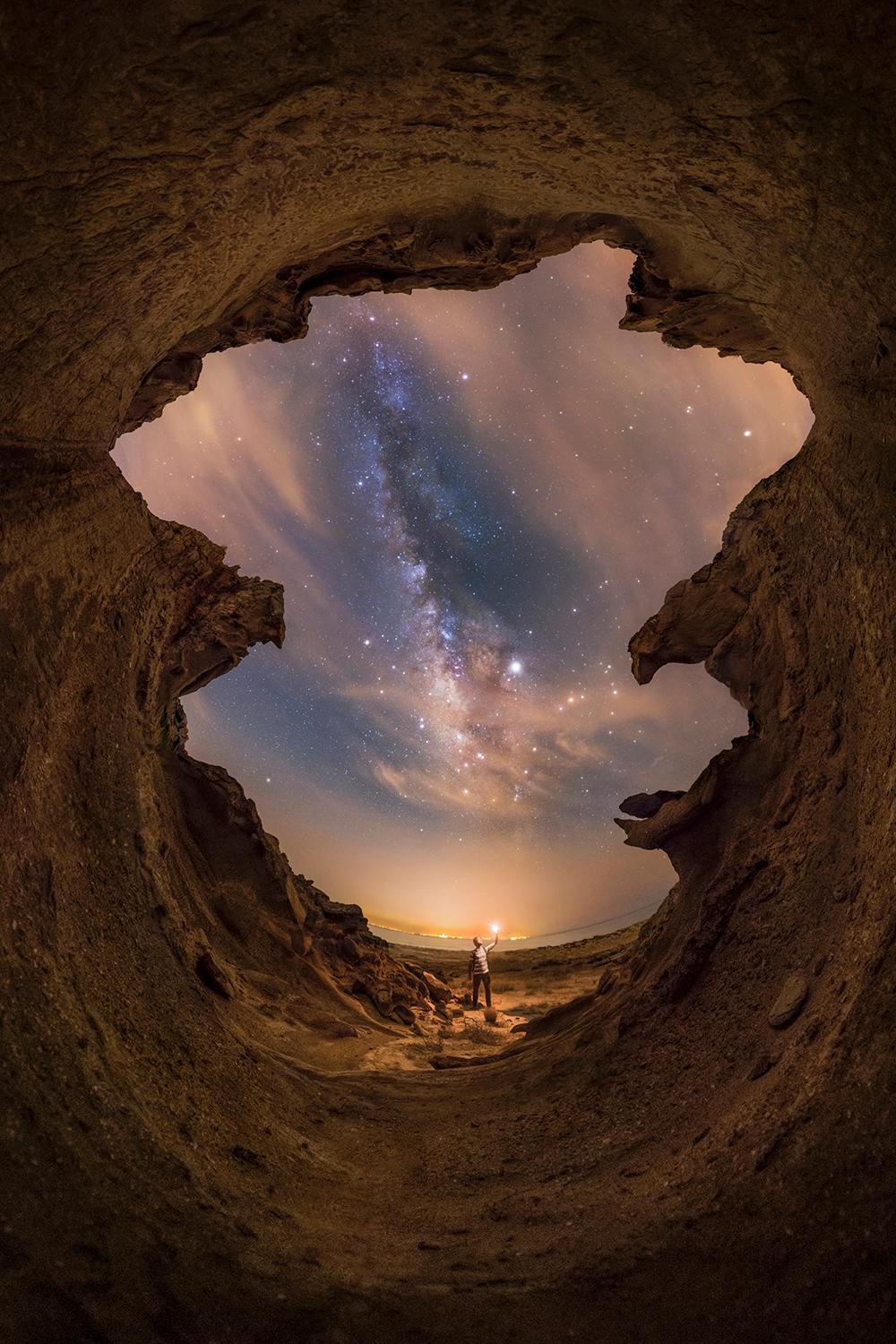 «Όμορφες νύχτες του Περσικού Κόλπου» Σε ένα από τα πολλά μονοπάτια πεζοπορίας κατά μήκος της ακτής του Ιράν, ο εικονιζόμενος φωτογράφος ανακάλυψε αυτή το απίθανο μέρος και απαθανάτισε τον Γαλαξία σε μια πανοραμική εικόνα 360 μοιρών