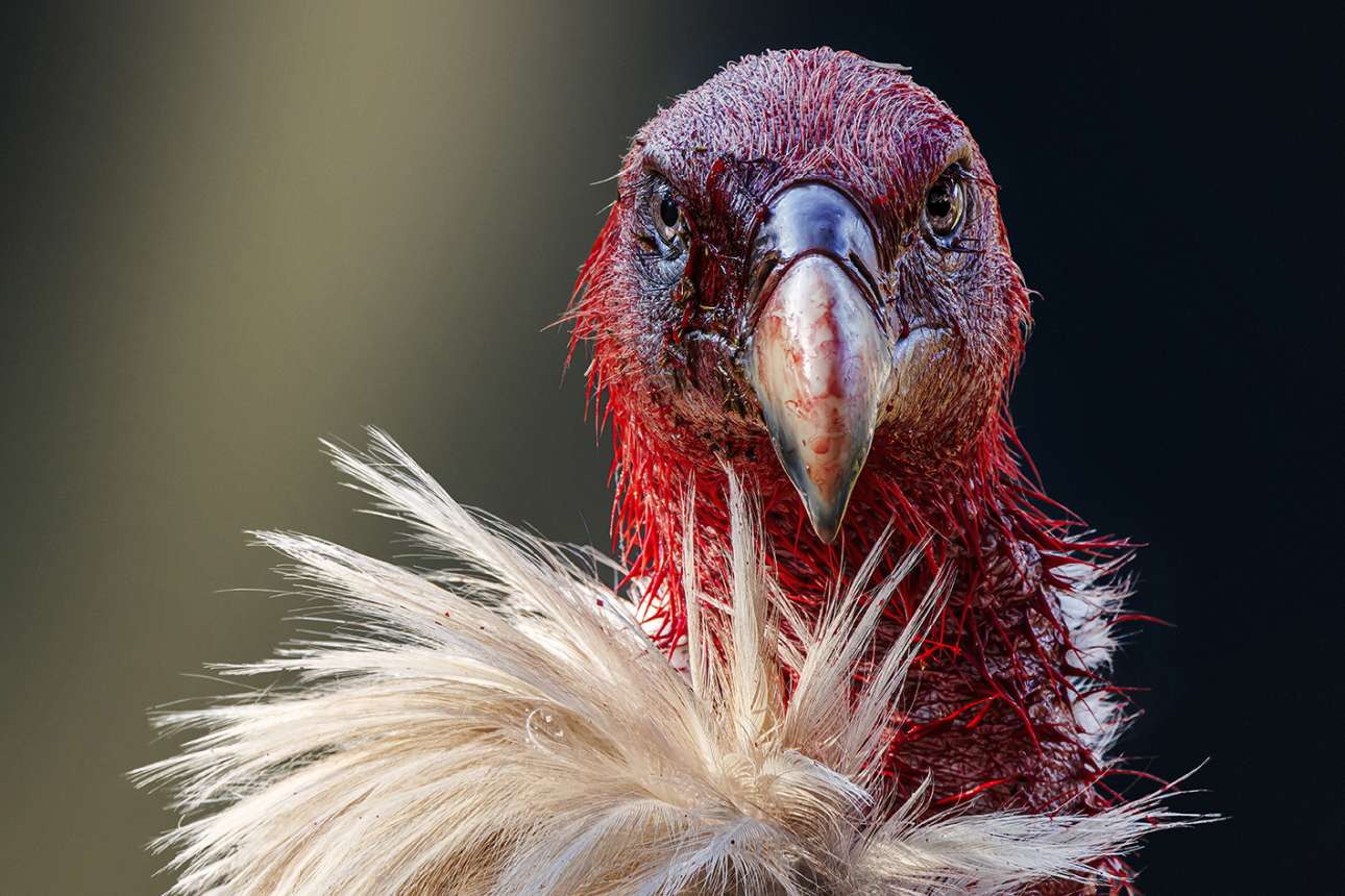 Τρίτη θέση στην κατηγορία «Πορτρέτα ζώων». Το ματωμένο κεφάλι ενός γύπα των Ιμαλαΐων φωτογραφισμένο στο Τσόπτα, στο κρατίδιο Ουταραχάντ της Ινδίας