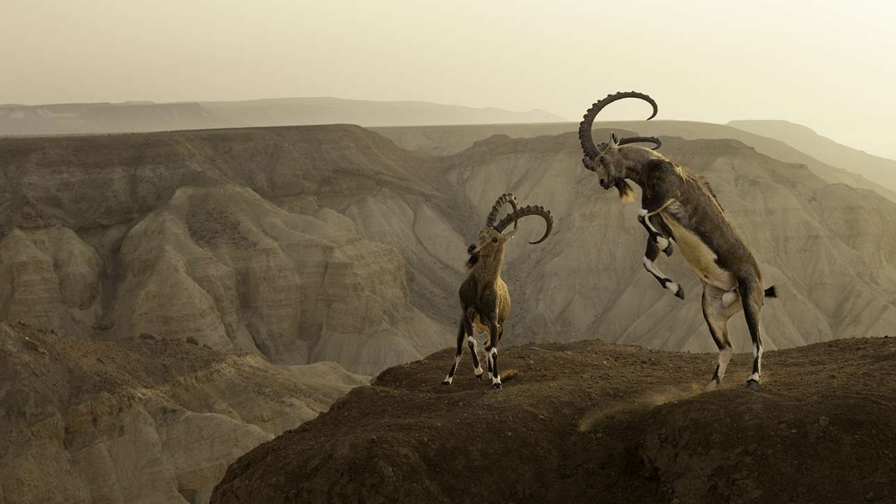 Νικητής στην κατηγορία «Ζώα στον βιότοπό τους». Eνα ζευγάρι αγριοκάτσικα (Nubian Ibex) στην έρημο Νεγκέβ του Ισραήλ