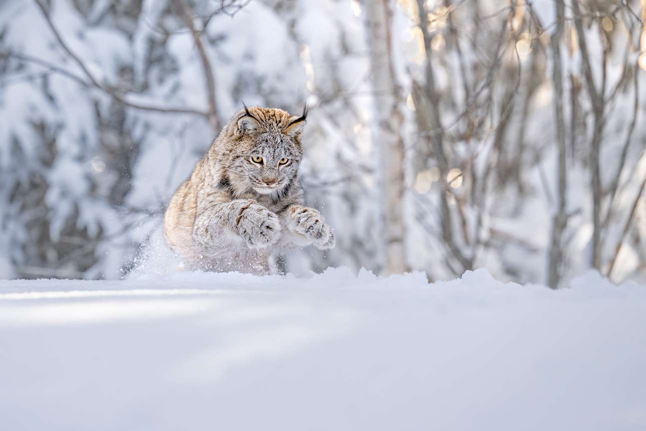 Δεύτερη θέση στην κατηγορία «Ζώα στον βιότοπό τους». Ενας λύγκας του Καναδά πηδάει μέσα στο χιόνι