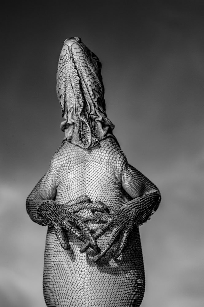 Πρώτη θέση στην κατηγορία Aσπρόμαυρο. Μια απίθανη λήψη ενός ιγκουάνα στο νησί Γρενάδα της Καραϊβικής