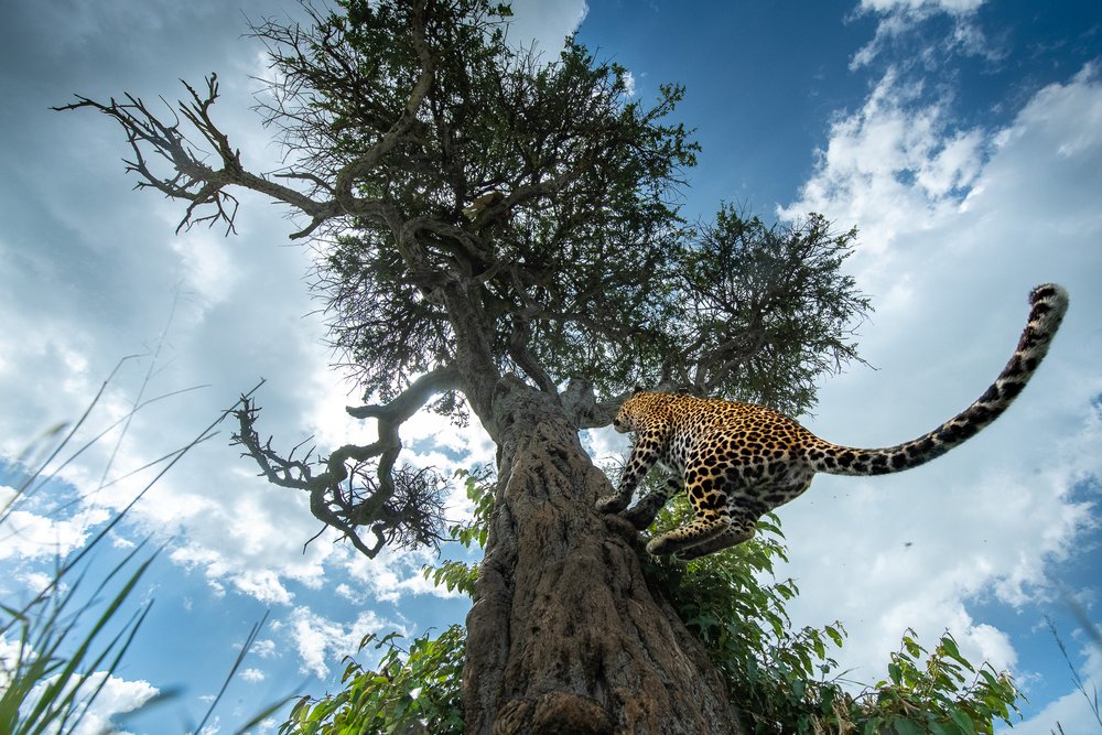 Δεύτερη θέση στην κατηγορία Ζώα στο Περιβάλλον τους. Μια λεοπάρδαλη σκαρφαλώνει σε δέντρο, στην Κένυα