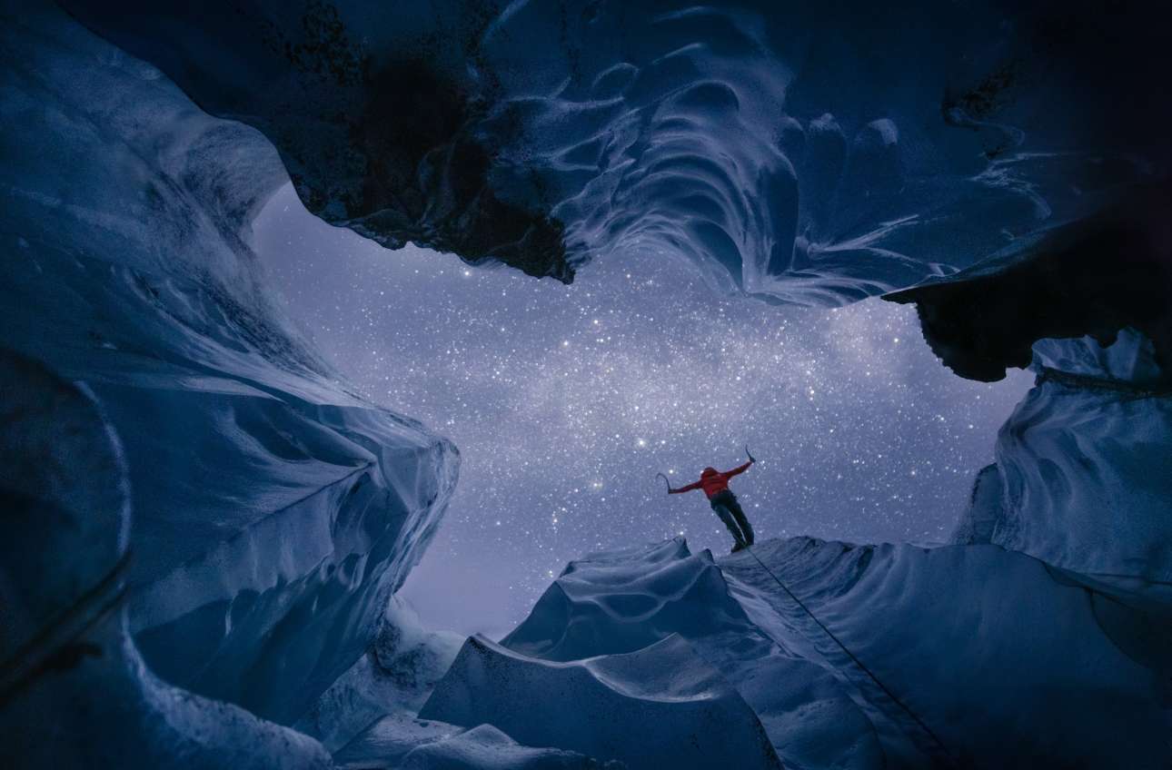Πρώτη θέση στην κατηγορία Ανθρωποι και Φύση. Παγετώνας στη Νότια Ισλανδία. «Ετσι είναι όταν βρίσκεσαι στα σπλάχνα ενός παγετώνα. Λίγοι θα τολμούσαν να μπουν εκεί μέσα, όπου είναι σκοτεινά, βαθιά, κρύα, δυνατά και υγρά. Και αυτός είναι ο σκοπός αυτής της φωτογραφίας: να πιέσεις τα όριά σου για να αποτυπώσεις αυτό που μόνο λίγοι άνθρωποι θα βιώσουν ποτέ τη νύχτα»