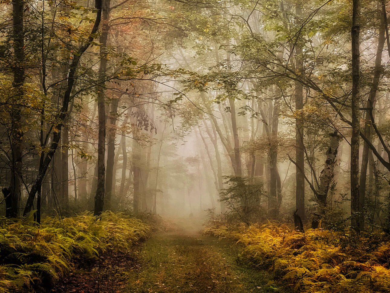 Πρώτη θέση στην κατηγορία «Τοπίο». Φθινοπωρινά χρώματα και βαριά ομίχλη πέφτει πάνω σε δάσος της Μασαχουσέτης
