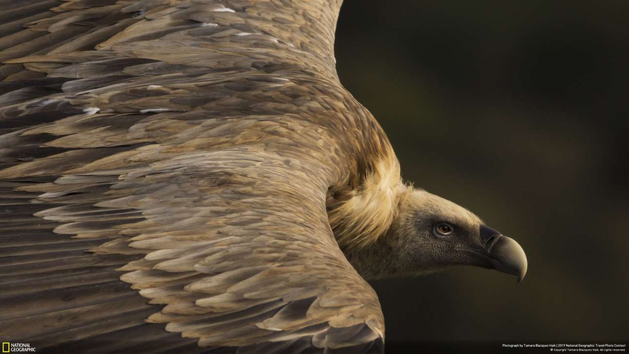 «Τρυφερό βλέμμα» είναι ο τίτλος της επόμενης εικόνας, από τη φωτογράφο Ταμάρα Μπλαζκέζ Χαΐκ, και πήρε το πρώτο βραβείο στην κατηγορία Φύση. Ενας πανέμορφος γυπαετός πετά στους αιθέρες στο Εθνικό Πάρκο της Ισπανίας Monfragüe. «Πώς μπορεί να λέει κανείς ότι τα αρπακτικά φέρνουν κακούς οιωνούς, όταν υπάρχει τόση τρυφερότητα σε αυτό το βλέμμα; Είναι πολύ σημαντικά κομμάτια του περιβάλλοντος καθώς φροντίζουν για την "ανακύκλωση" των νεκρών ζώων. Είναι ευγενή και μεγαλοπρεπή ζώα - βασιλιάδες του ουρανού. Κοιτάζοντάς τα να πετούν θα έπρεπε να νιώθουμε σεβασμό και να τα θαυμάζουμε» σχολιάζει η φωτογράφος
