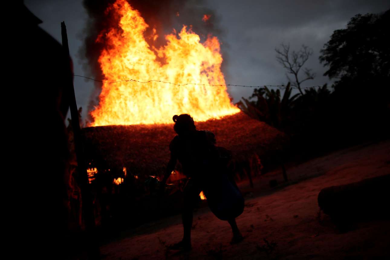 Η καλύβα γίνεται παρανάλωμα του πυρός. Ισως η μοναδική φωτιά στον Αμαζόνιο με θετικό πρόσημο.