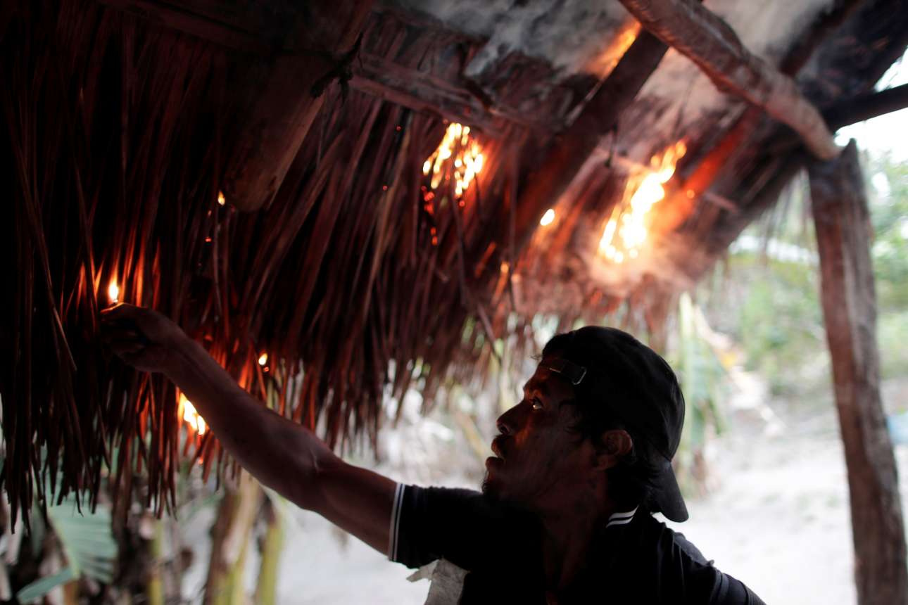 Ενας Γκουαχαχάρα βάζει φωτιά σε μια καλύβα παράνομων υλοτόμων. Πόσες άραγε να υπάρχουν στο απέραντο δάσος του Αμαζονίου;