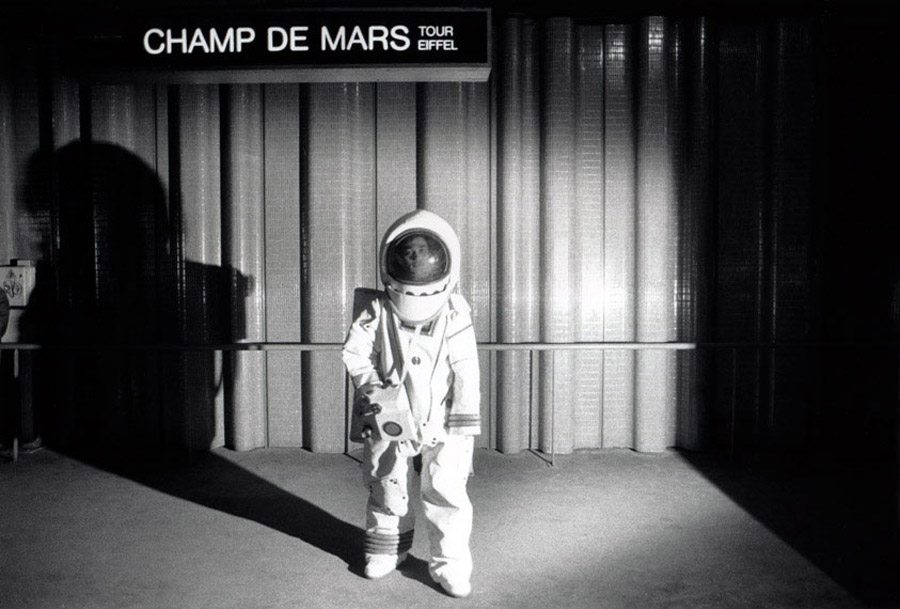 Ενας αστροναύτης περιμένει στον σταθμό του Πεδίου του Αρεως στο κέντρο της γαλλικής πρωτεύουσας. Η παραπομπή στον πλανήτη Αρη είναι προφανής