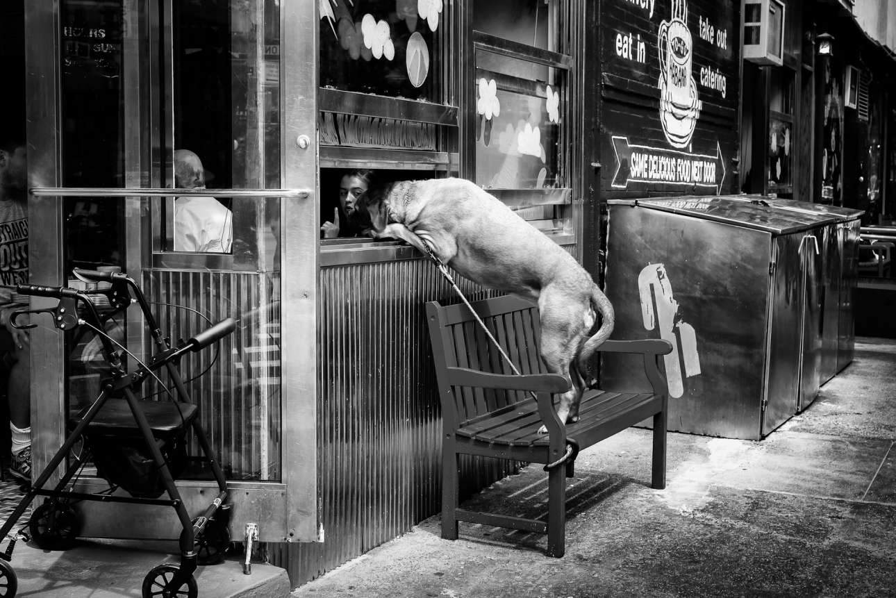 Βραβείο κατηγορία Αστικό Τοπίο. Ενας τεράστιος σκύλος προσπαθεί να κλέψει το φαγητό από πελάτη εστιατορίου, στο Μανχάταν της Νέας Υόρκης. «Τέλειο τάιμινγκ, ρεαλιστική, ασπρόμαυρη και κωμική, η λήψη του Τζον Γουάιτ έχει όλα τα χαρακτηριστικά του κλασικού ρεπορτάζ, στο στιλ του Ανρί Καρτιέ Μπρεσόν και του Ρομπέρ Ντουανό» γράφουν οι κριτές