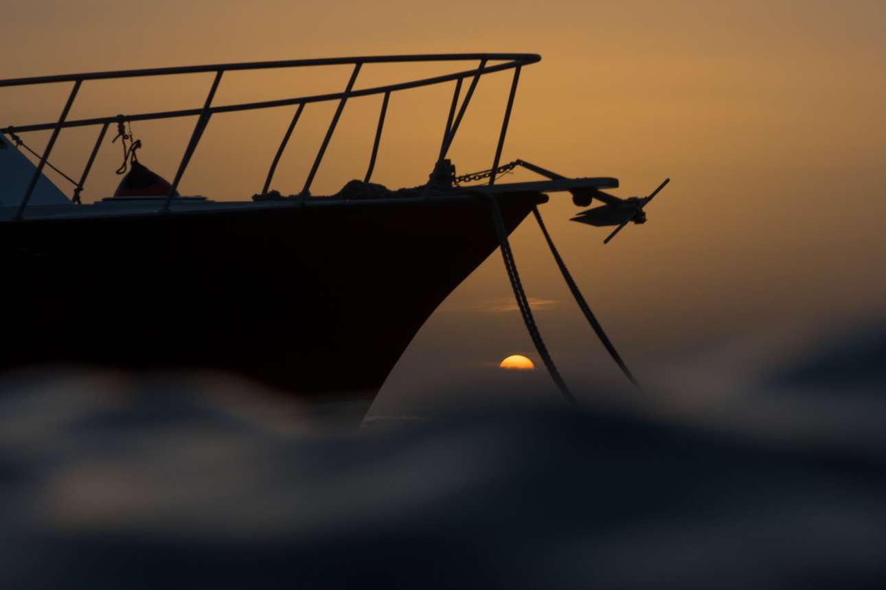 Νικητής στην κατηγορία Πάνω από το Νερό. Μέσα από τη θάλασσα και καθώς ο ήλιος δύει, η φωτογράφος αιχμαλωτίζει ένα αγκυροβολημένο σκάφος σε μία πολύ όμορφη εικόνα