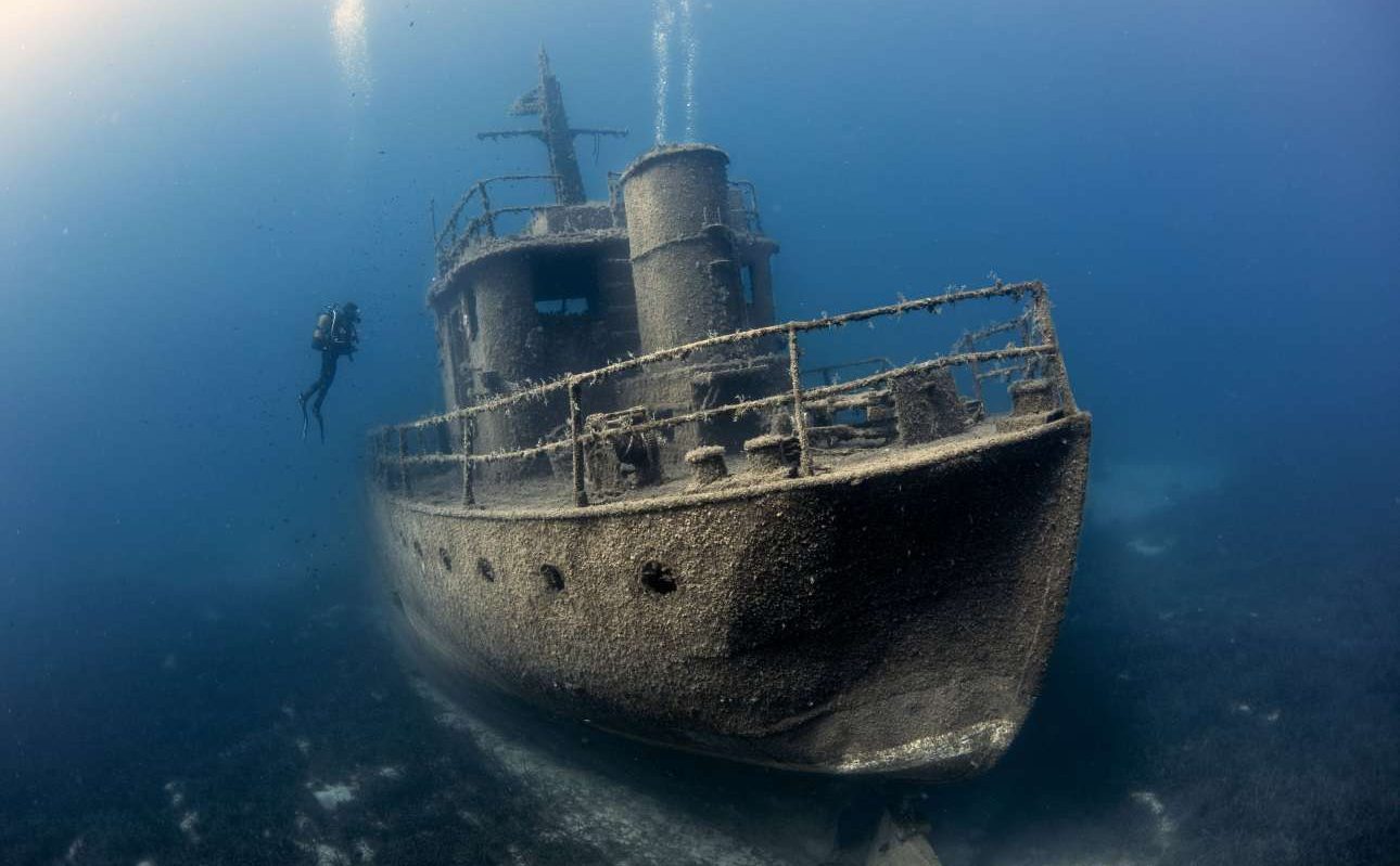 Νικητής στην κατηγορία Ναυάγια. Δύτης περιεργάζεται ναυαγισμένο πλοίο στο βυθό της Αλικαρνασσού (Μποντρούμ), στην Τουρκία