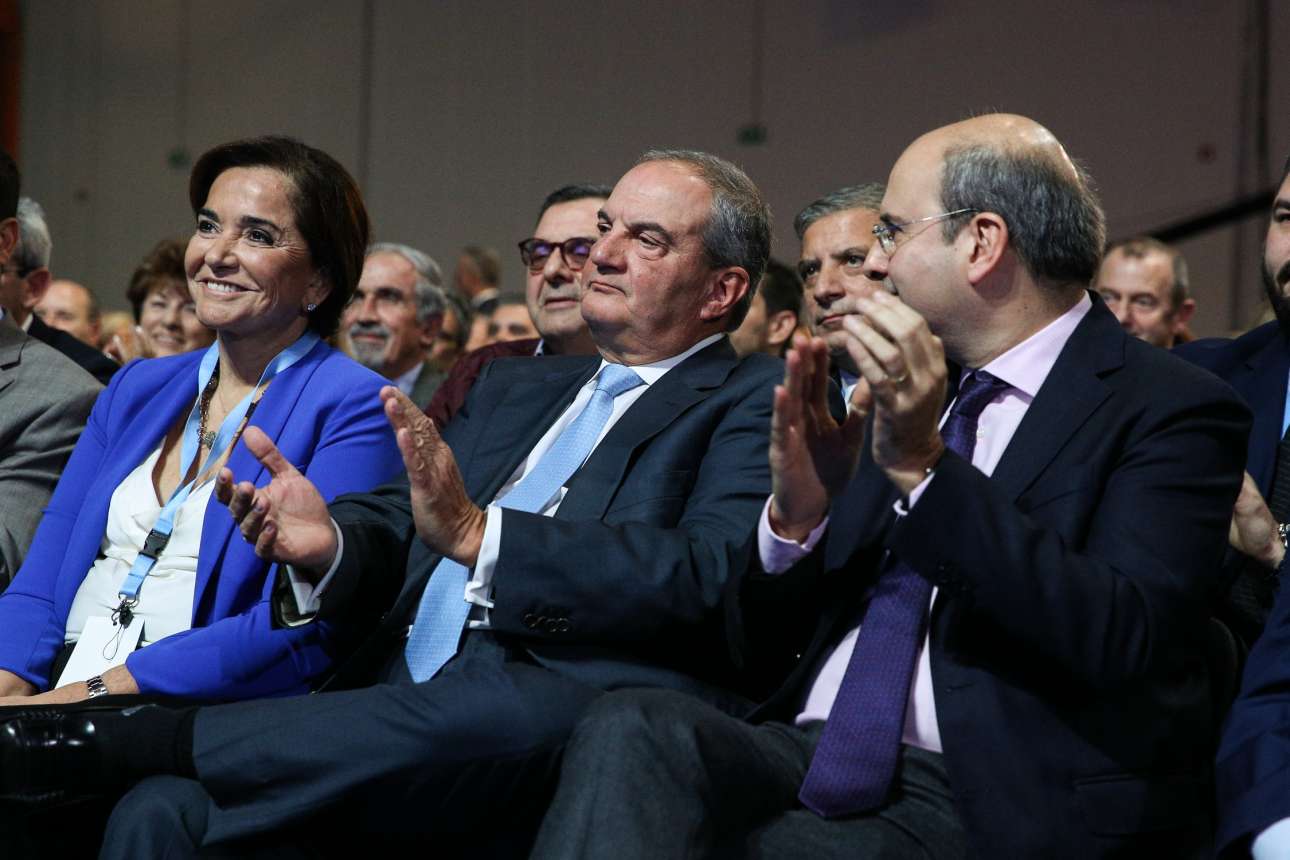 Ντόρα Μπακογιάννη, Κώστας Καραμανλής, Κωστής Χατζηδάκης χειροκροτούν τον πρόεδρο της ΝΔ