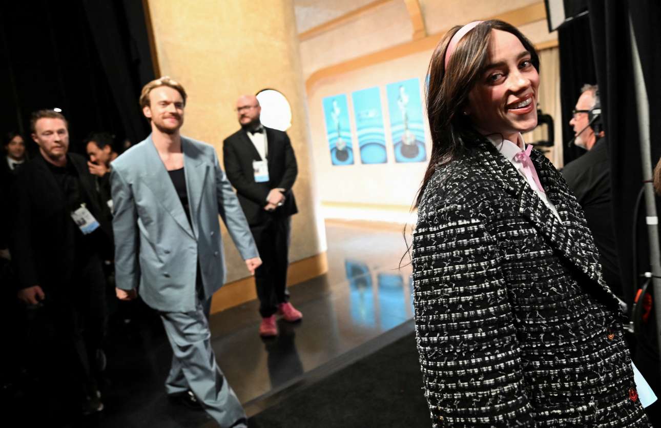 Η Μπίλι Εϊλις και ο Φινέας Ο' Κόνελ στα παρασκήνια, έχοντας μόλις κερδίσει το Οσκαρ Καλύτερου Τραγουδιού με το «What Was I Made For?»