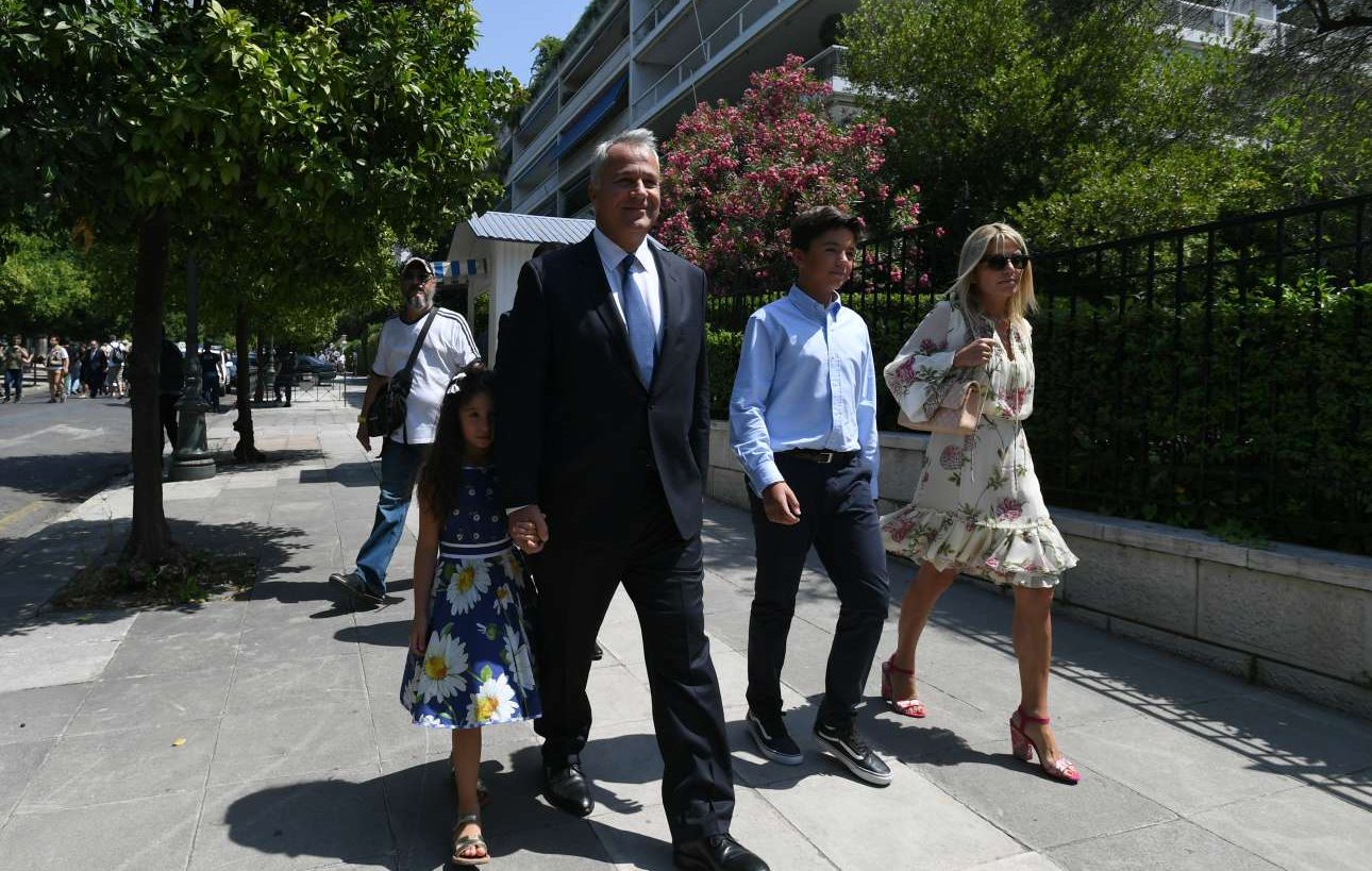 Ο νέος υπουργός Εσωτερικών Τάκης Θεοδωρικάκος κατηφορίζει την Ηρώδου Αττικού με την οικογένειά του