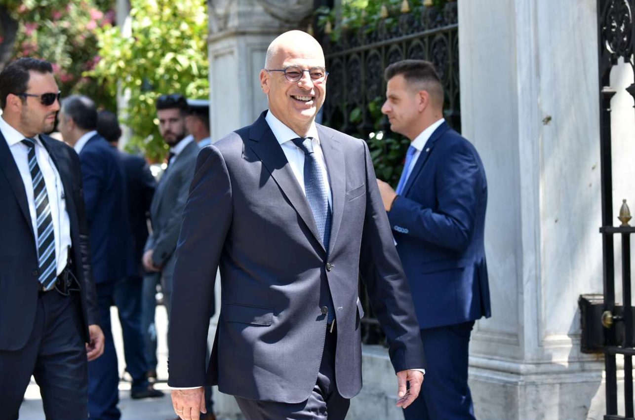 Τα «πηγαδάκια» μετά την τελετή. Ο υπ. Εξωτερικών Νίκος Δένδιας συνομιλεί με τον εικονιζόμενο αριστερά υπουργό Ψηφιακής Διακυβέρνησης Κυριάκο Πιερρακάκη, ενώ ο υπ. Ανάπτυξης και Επενδύσεων συνοδεύει τον γιο του