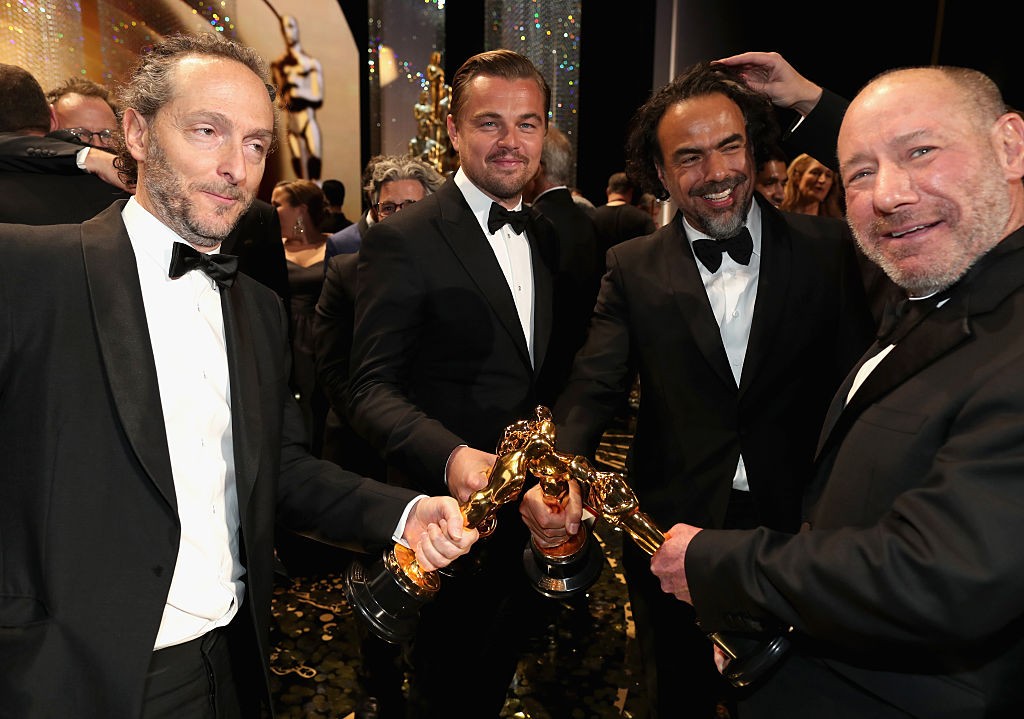 Από αριστερά ο διευθυντής φωτογραφίας του «The Revenant» Εμουνουέλ Λουμπέζκι έφυγε για τρίτη συνεχόμενη χρονιά με το αντίστοιχο Οσκαρ. Για τον Ντι Κάπριο ήταν η πρώτη και για τον Ινιαρίτου η δεύτερη. Μαζί τους ο παραγωγός της καλύτερης ταινίας της χρονιάς «Spotlight», Στίβεν Γκόλιν