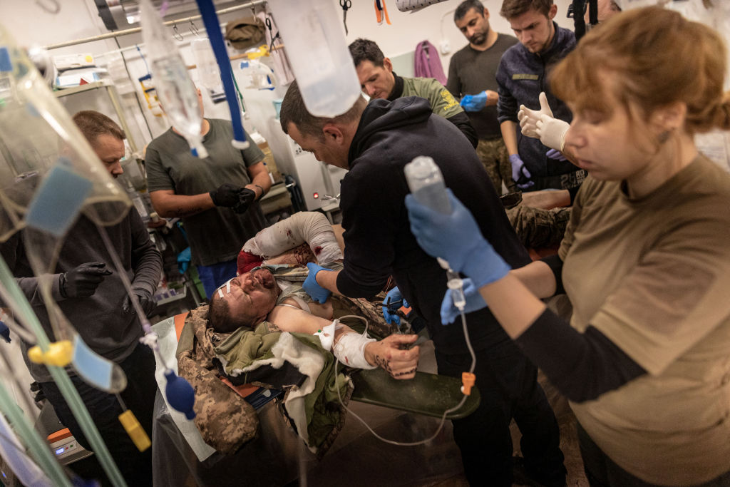 Γιατροί του ουκρανικού στρατού περιθάλπουν τραυματισμένο στρατιώτη στο Ντονέτσκ, στις 9 Νοεμβρίου 2023