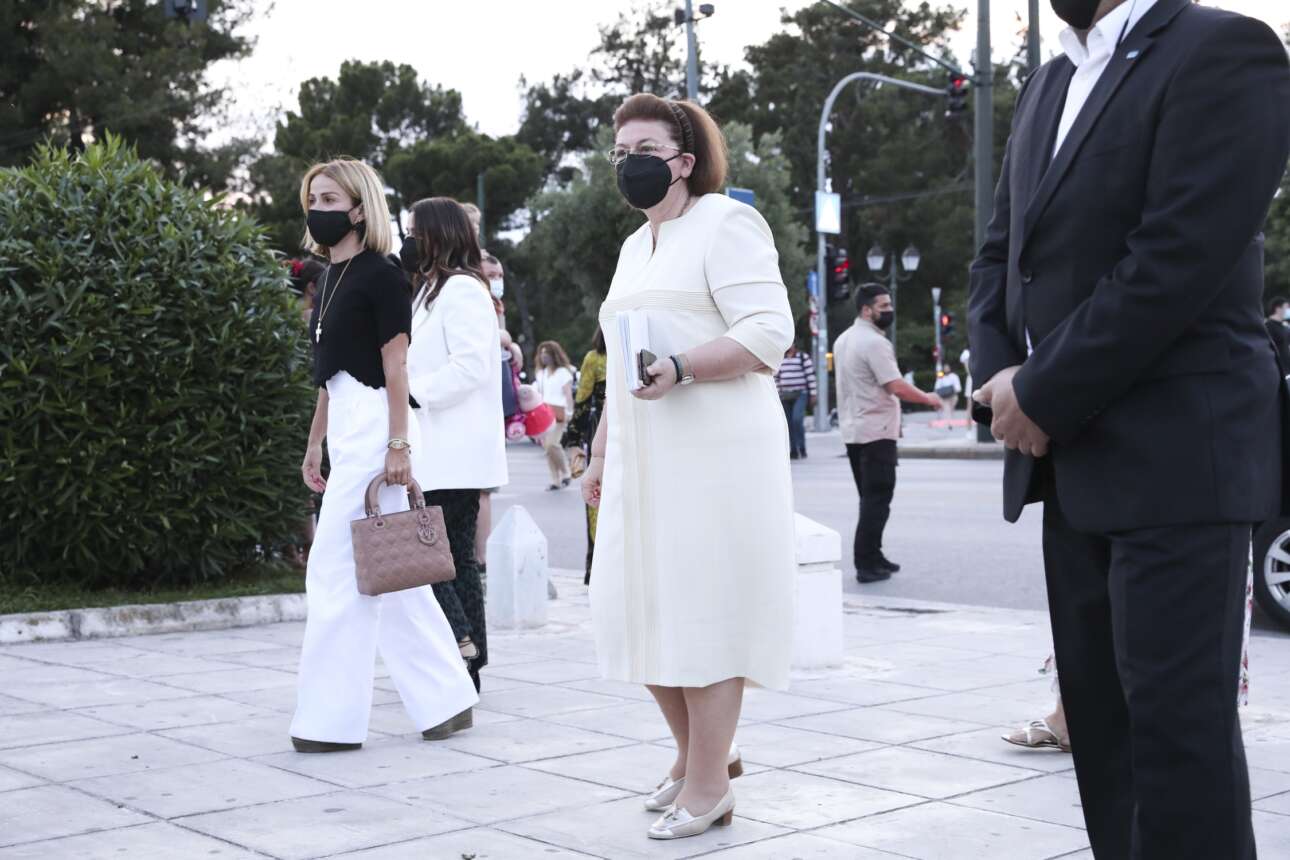 Η Πρόεδρος της Δημοκρατίας Κατερίνα Σακελλαροπούλου αποχωρεί από την εκδήλωση