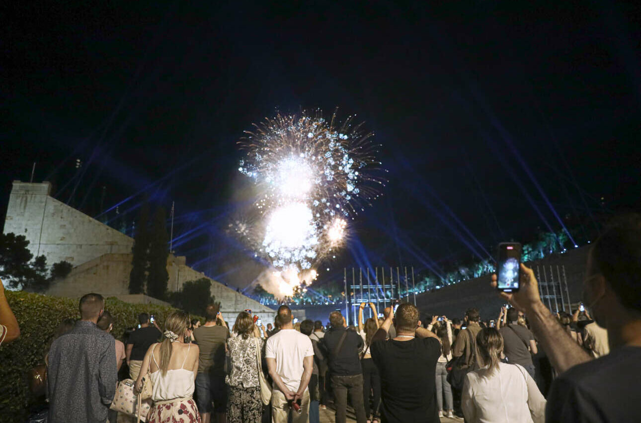 Πυροτεχνήματα στον αττικό ουρανό, μοντέλα της κολεξιόν Dior Cruise 2022 στο ταρτάν του Παναθηναϊκού Σταδίου
