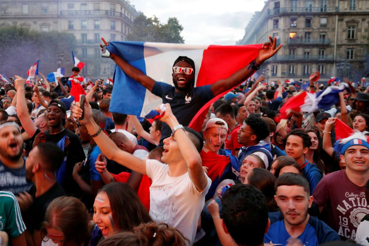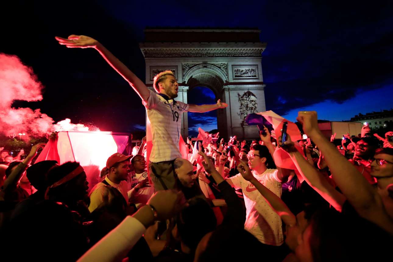 Με το σφύριγμα της λήξης του ματς με το Βέλγιο, στον ημιτελικό της Αγίας Πετρούπολης, ξέφρενα ήταν τα πανηγύρια των γάλλων φιλάθλων. Η Λεωφόρος των Ηλυσίων πλημμύρισε με κόσμο που πανηγύριζε την πρόκριση της Εθνικής ομάδας ποδοσφαίρου σε τελικό Μουντιάλ, έπειτα από 12 χρόνια. Επίκεντρο των πανηγυρισμών η Αψίδα του Θριάμβου, με τους περισσότερους να εύχονται να βρεθούν ξανά εκεί το απόγευμα της Κυριακής, μετά τον μεγάλο τελικό της Μόσχας