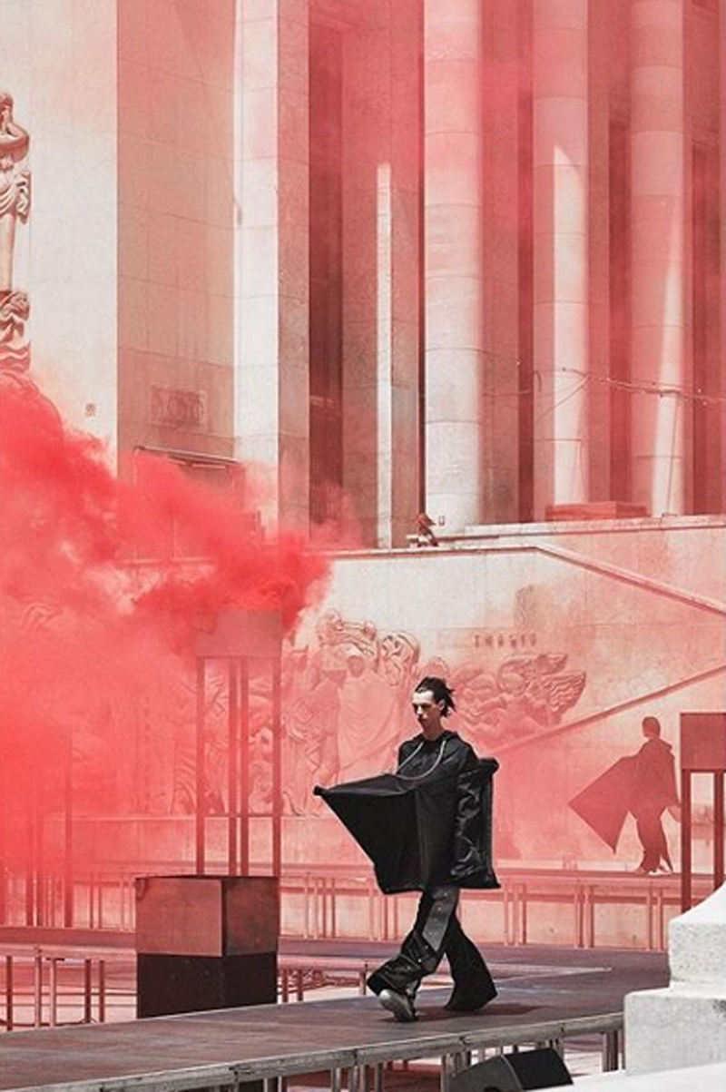Rick Owens. Ο ταλαντούχος Ρικ Οουενς έκλεψε την παράσταση με την επίδειξη που διοργάνωσε στον υπαίθριο χώρο του Palais de Tokyo , όπου έστησε έναν Πύργο της Βαβέλ και τα μοντέλα του εμφανίστηκαν μέσα από σύννεφα τοξικού καπνού προκαλώντας σκέψεις για το χάος και τη δημιουργία
