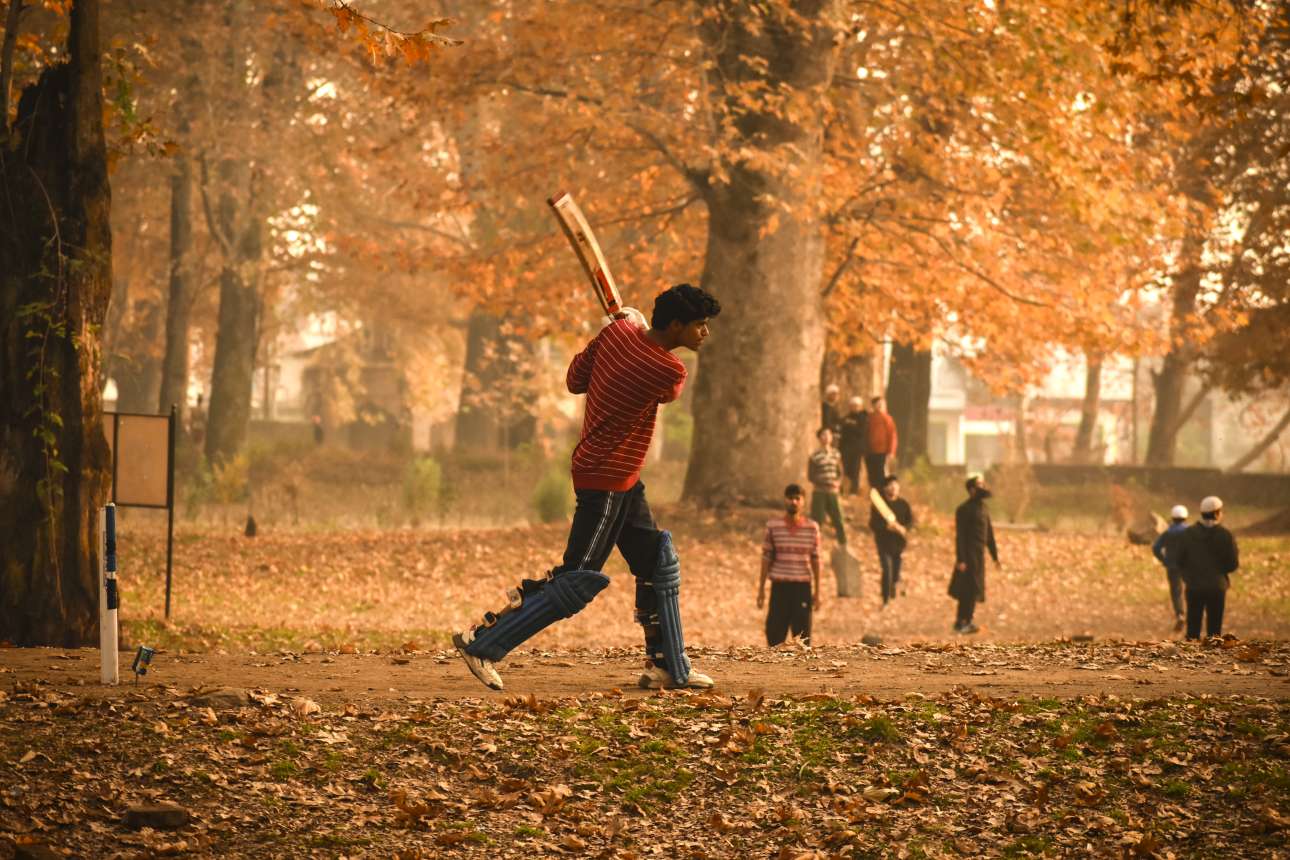 Κρίκετ στους Κήπους Μούγκαλ στο Κασμίρ της Ινδίας, που έχει ντυθεί στα χρώματα του φθινοπώρου