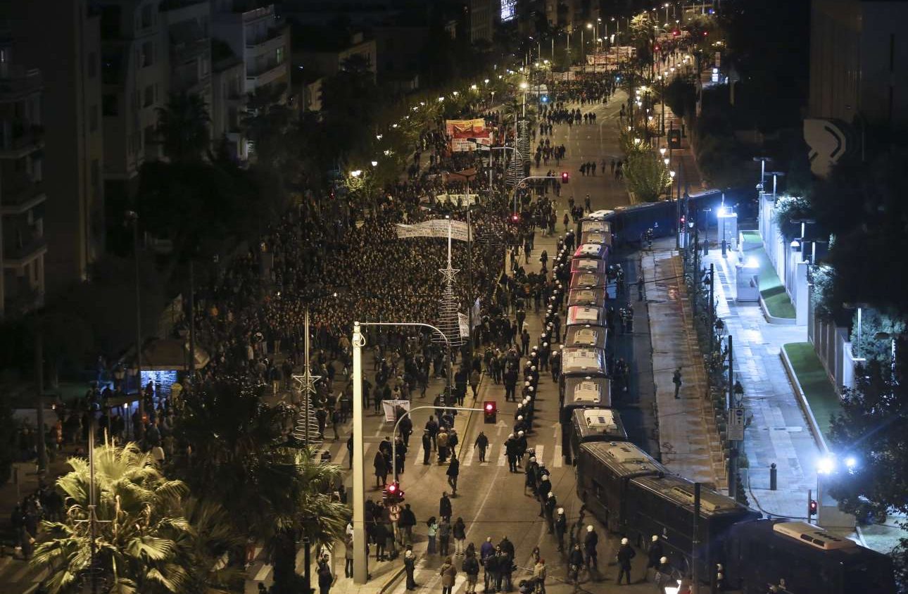 Σάββατο, 17 Νοεμβρίου, Αθήνα. Η κεφαλή της πορείας για την επέτειο του Πολυτεχνείου φτάνει μπροστά στην αμερικανική πρεσβεία. Εκεί βρίσκονται 17 κλούβες των ΜΑΤ και αρκετές διμοιρίες που έχουν περικυκλώσει την πρεσβεία