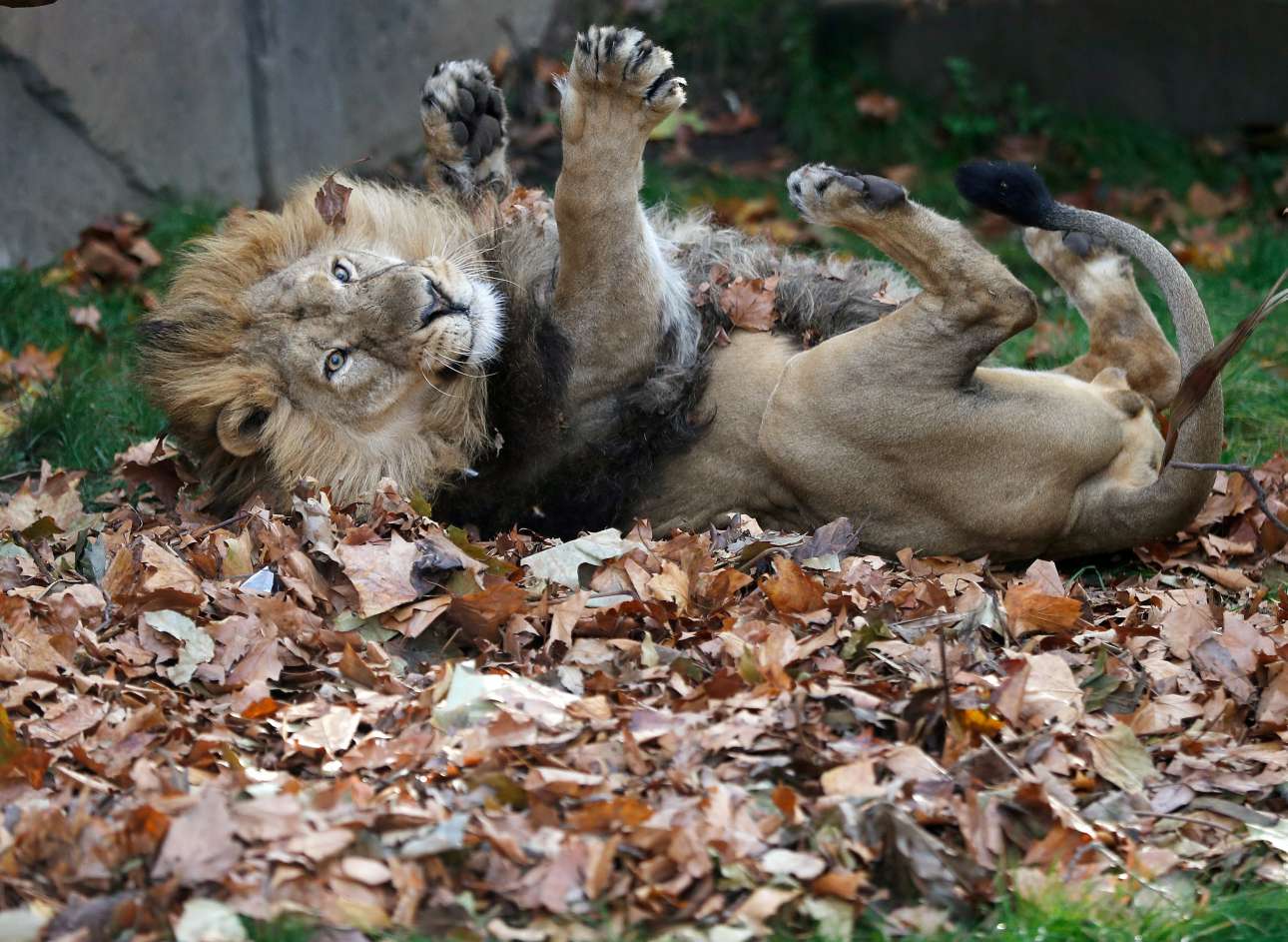 Πέμπτη, 18 Οκτωβρίου, Μεγάλη Βρετανία. Ο Μπανού, ένα ασιατικό λιοντάρι, περνά ώρες χαλάρωσης ξαπλώνοντας σε ένα σωρό από φύλλα δέντρων που έχουν αρωματιστεί με κάρδαμο, κανέλα και γαρίφαλο στον ζωολογικό κήπο του Λονδίνου