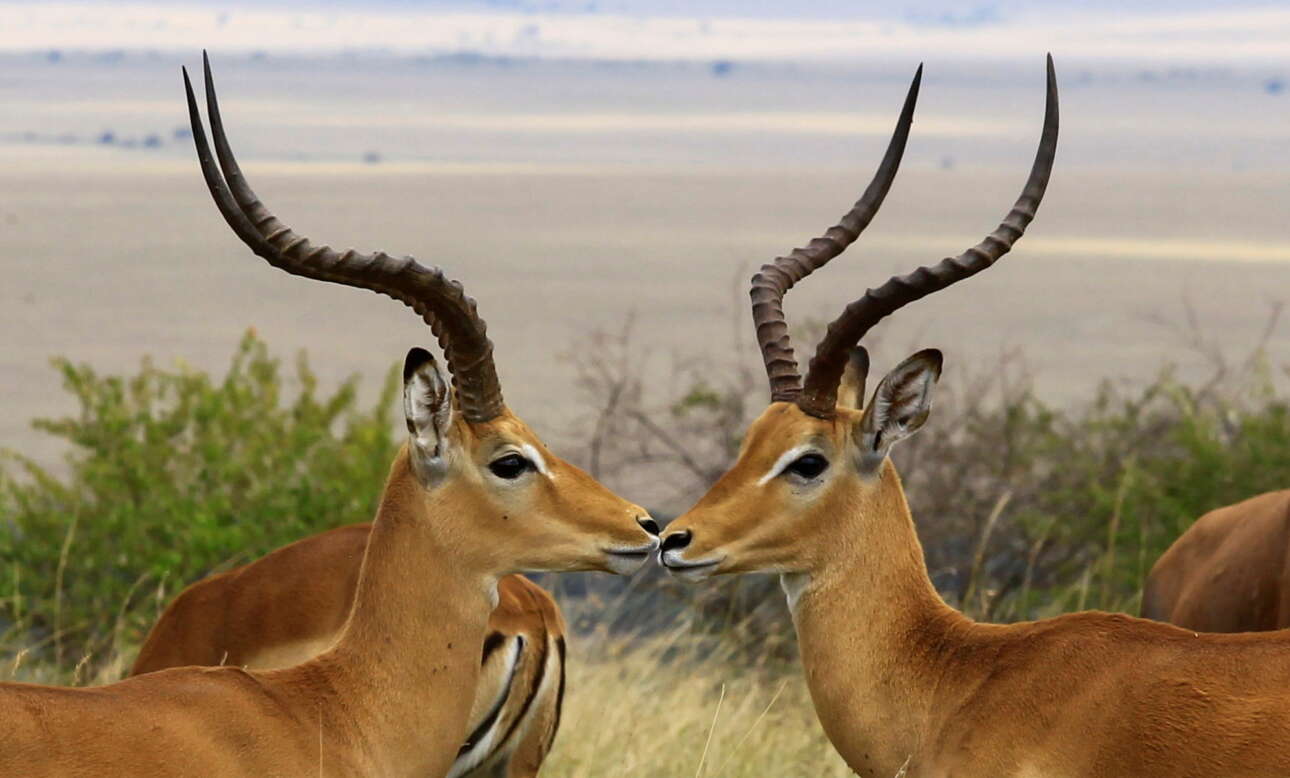 Δύο εντυπωσιακές αντιλόπες ποζάρουν στον φακό στο εθνικό αποθεματικό πάρκο Μασάι Μάρα στην κομητεία Ναρόκ της Κένυας