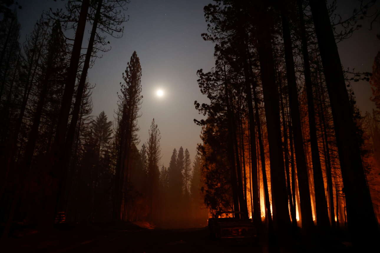 Καπνός και φωτιά αναδύονται από την περιοχή Γκρίζλι Φλατς μία ημέρα μετά το καταστροφικό πέρασμα της φωτιάς που οι αμερικανικές αρχές έχουν βαπτίσει Κάλντορ