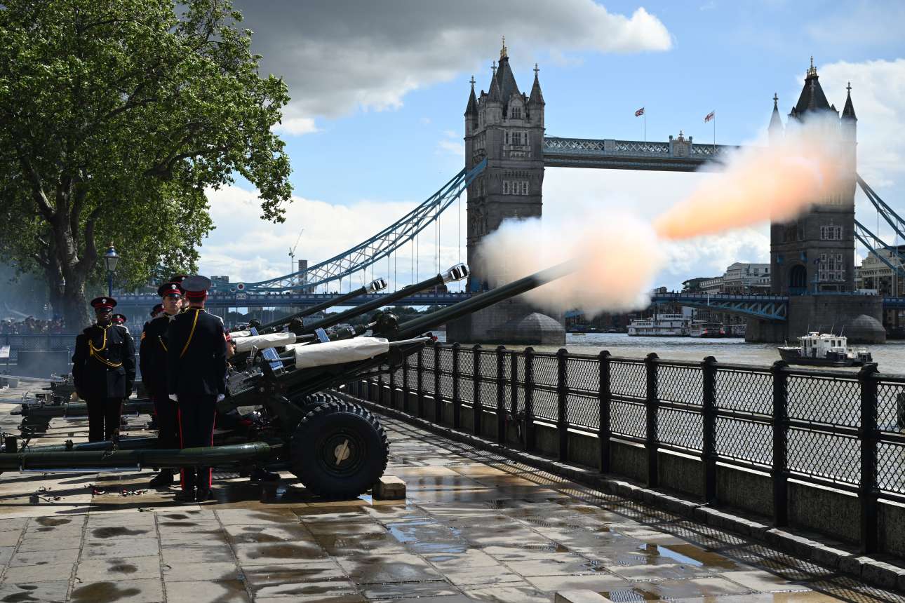 Και, τσουπ, από τα αλώνια στα σαλόνια: στις 17 Ιουλίου «μπαμ ηκούσθη στον αέρα» του Λονδίνου – όχι, δεν του χίμηξαν ύπουλα οι Ρώσοι, απλώς η βασίλισσα Καμίλα (σύζυγος του βασιλιά Καρόλου Γ’) γιόρτασε τα γενέθλιά της και τα στοιχεία Πυροβολικού έπιασαν δουλειά… πρωτοκόλλου
