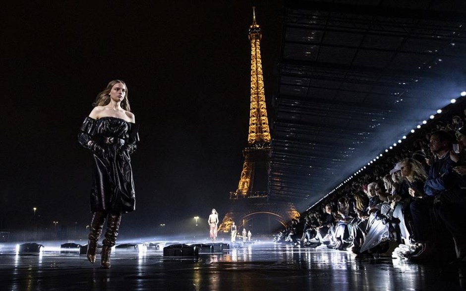 Εντυπωσιακό στιγμιότυπο από την πασαρέλα του οίκου Saint Laurent στην Εβδομάδα Μόδας στο Παρίσι