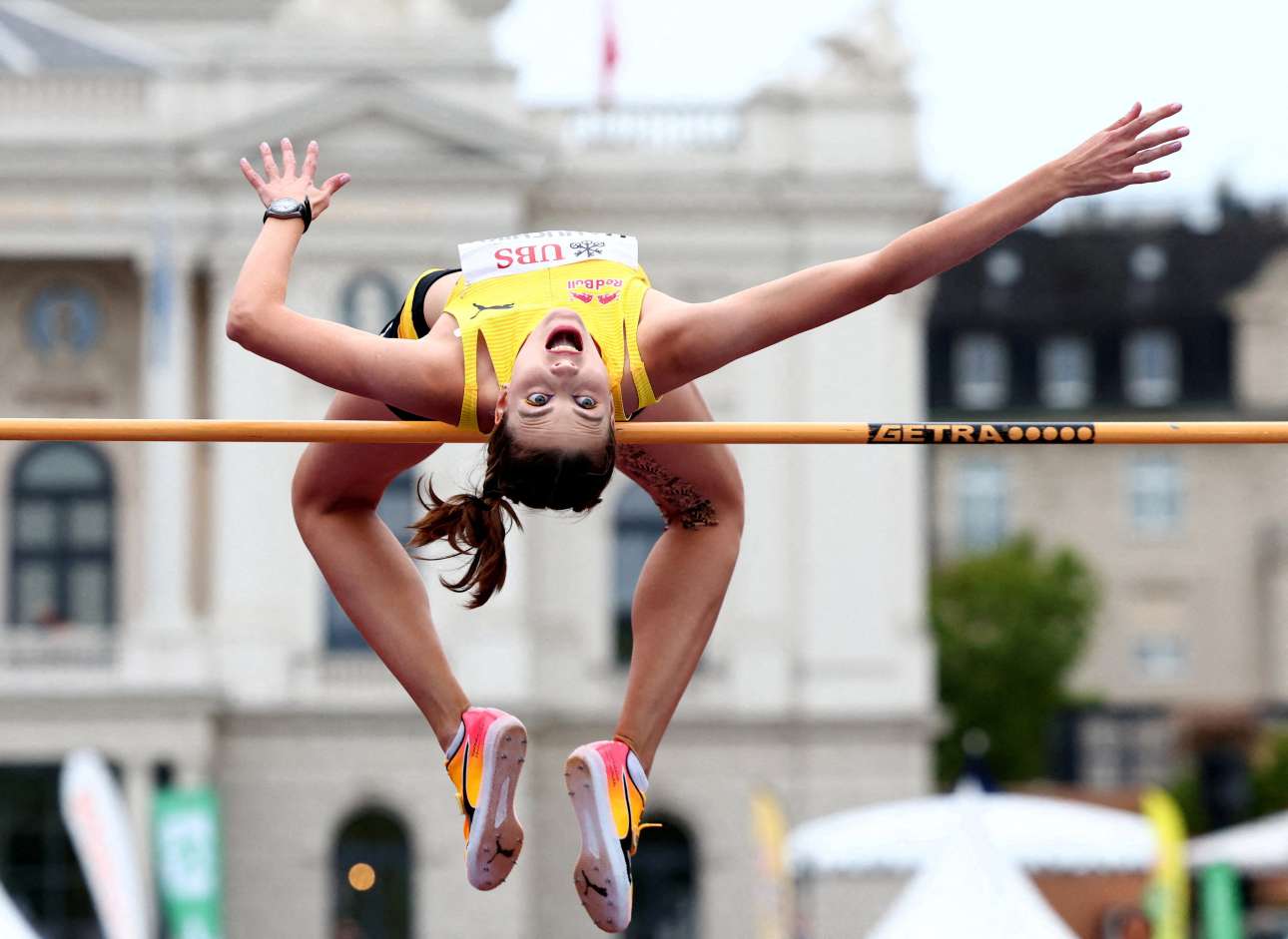 Η Ουκρανή Γιαροσλάβα Μάχουτσιχ, ολυμπιονίκης και κάτοχος του παγκόσμιου ρεκόρ στο άλμα εις ύψος γυναικών, ίπταται λίγο πάνω από τον πήχη στον τελικό του φετινού Diamond League, στη Ζυρίχη της Ελβετίας