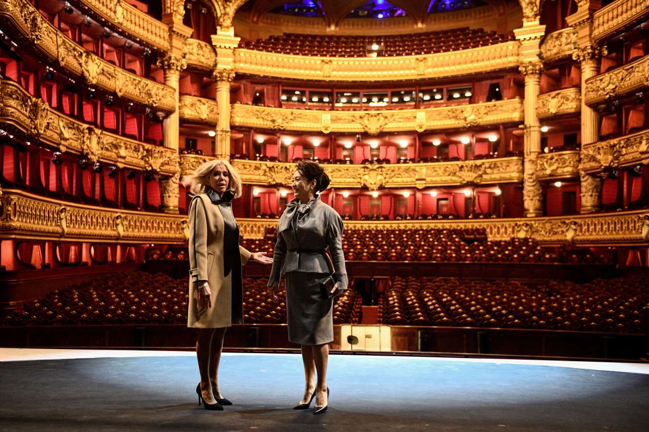 Δευτέρα, 25 Μαρτίου, Γαλλία. Η Πρώτη Κυρία της Γαλλίας, Μπριζίτ Μακρόν, με την σύζυγο του κινέζου προέδρου Σι Τζινπίνγκ, Πενγκ Λιγουάν, στην Οπερά Γκαρνιέ, στο Παρίσι. Ο κινέζος πρόεδρος επισκεπτόταν επισήμως τη Γαλλία