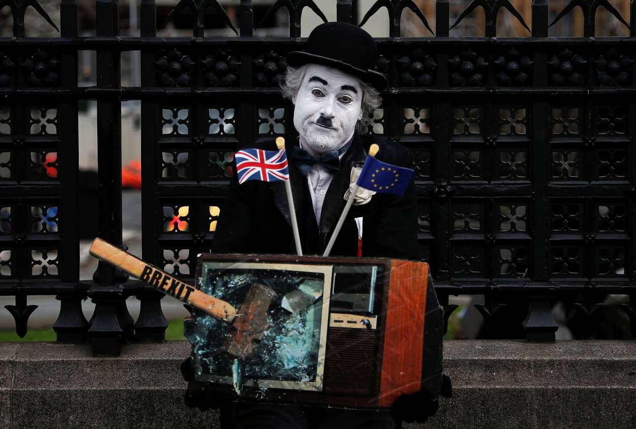 Τετάρτη, 27 Μαρτίου, Μεγάλη Βρετανία. Περφόρμερ έχει στηθεί έξω από το Βρετανικό Κοινοβούλιο στο Λονδίνο τη στιγμή που κορυφώνονται οι ψηφοφορίες σχετικά με το Brexit στη Βουλή των Κοινοτήτων