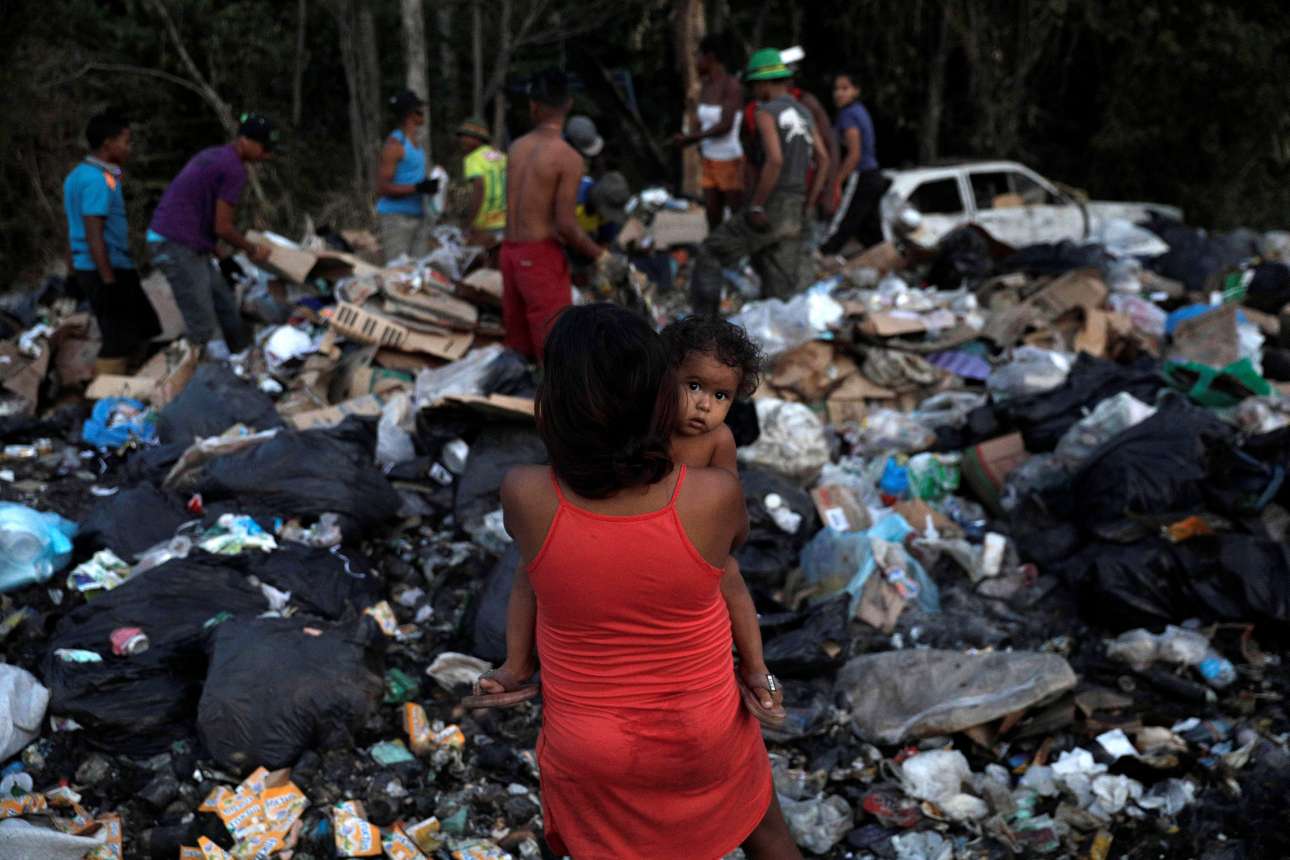 Παρασκευή, 1 Μαρτίου, Βενεζουέλα. Η 17χρονη Αστρίντ Πράντο, έγκυος στον έβδομο μήνα, κρατάει το γιο της Τζεσουάνι καθώς περιμένει τον άντρα της ο οποίος μαζί με άλλους αναζητούν ανακυκλώσιμα υλικά σε χωματερή στην περιοχή Πακαραΐμα