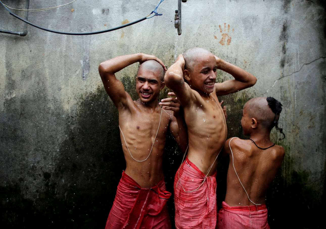 Δευτέρα, 27 Αυγούστου, Νεπάλ. Νεαροί Ινδουιστές ιερείς κάνουν το μπάνιο τους στο πλαίσιο ενός τελετουργικού κατά τη διάρκεια του θρησκευτικού φεστιβάλ Janai Purnima στο Κατμαντού