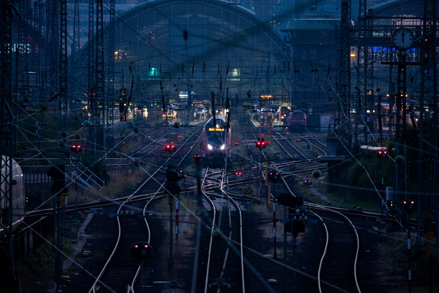 Οι άδειες σιδηροδρομικές γραμμές κατά τη διάρκεια απεργίας της Ένωσης Γερμανών Μηχανοδηγών στη Φρανκφούρτη
