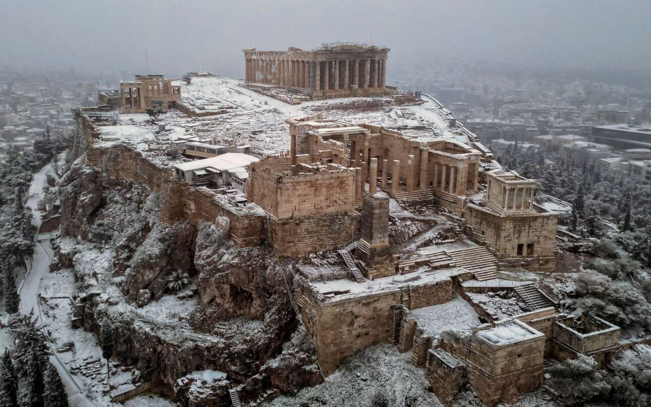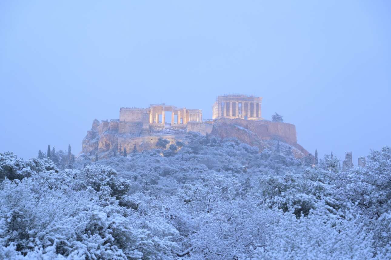 Κακοκαιρία Barbara: Στα «λευκά» η Ακρόπολη