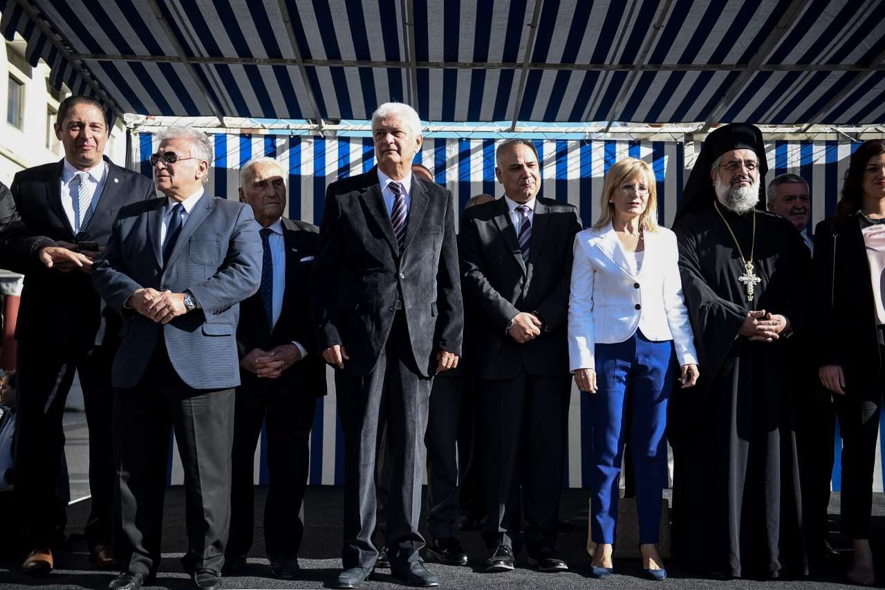 Η εξέδρα των επισήμων. Νοτοπούλου, Τζιτζικώστας, Καλαφάτης και η Πατουλίδου, μάλλον εμπνευσμένη από το μαθητικό στοιχείο της παρέλασης