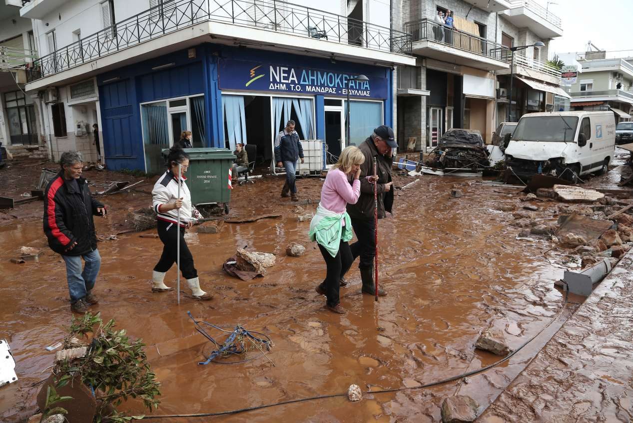 Σε κατάσταση έκτακτης ανάγκης τέθηκαν οι περιοχές Μάνδρας, Νέας Περάμου και Μαγούλας, μετά το πρωτοφανές χτύπημα από τις πλημμύρες. Ενα τσουνάμι λάσπης έπνιξε τη Δυτική Αττική προκαλώντας ανυπολόγιστες ζημιές και τον θάνατο τουλάχιστον 15 ανθρώπων. Τα λασπόνερα ήρθαν τις πρώτες πρωινές ώρες από το όρος Πατέρας και έπνιξαν τα πάντα