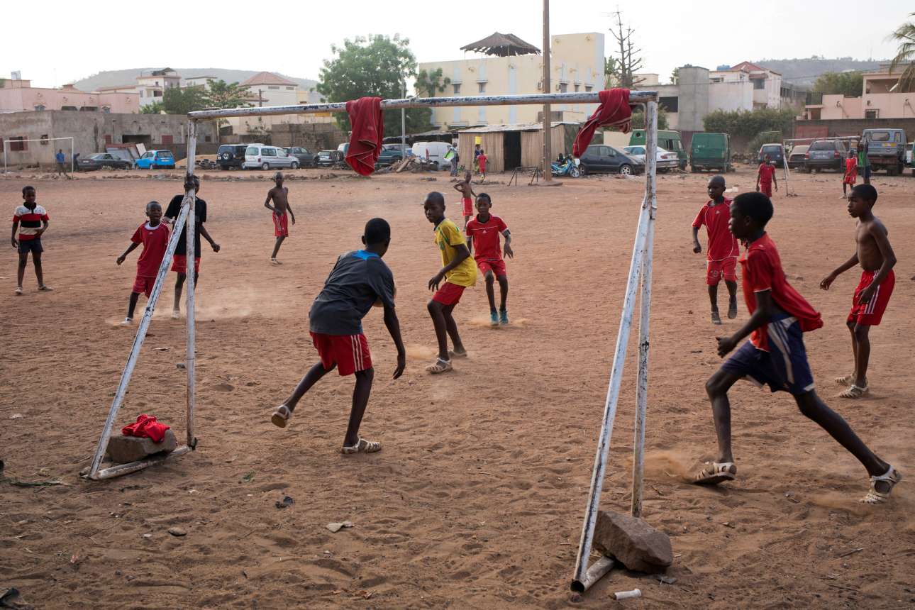 Γειτονόπουλα της περιοχής ACI 2000 στο Μπαμάκο του Μάλι παίζουν ποδόσφαιρο φορώντας πλαστικά λευκά σανδάλια
