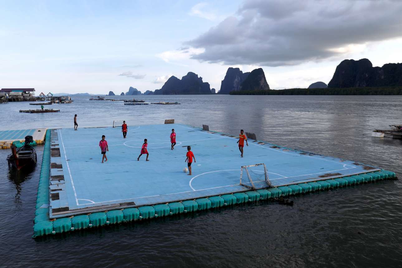 Ενα διαφορετικό ματς ποδοσφαίρου πάνω σε πλωτό γήπεδο στο ψαροχώρι Ko Panyi της Ταϊλάνδης. Βασικός στόχος -προφανώς- να μη σου πέσει η μπάλα στο νερό