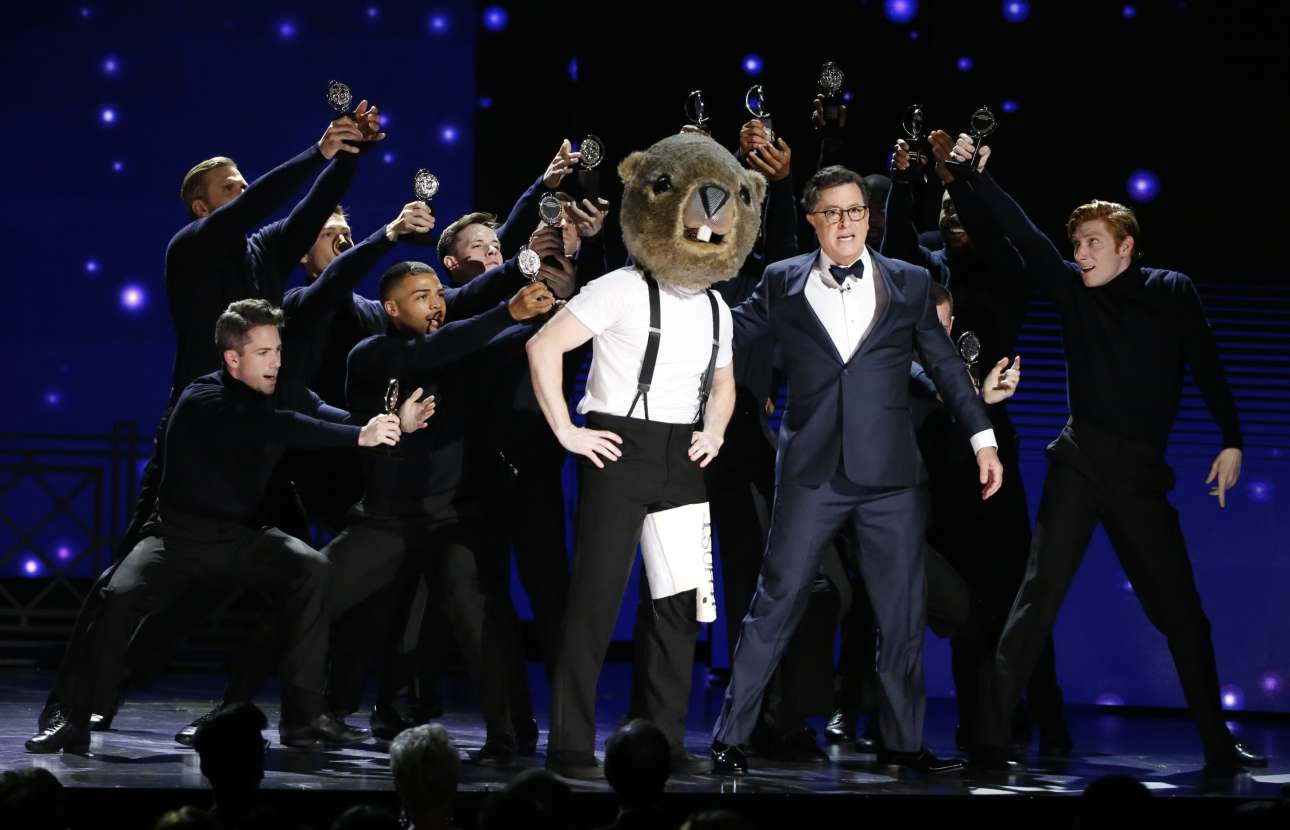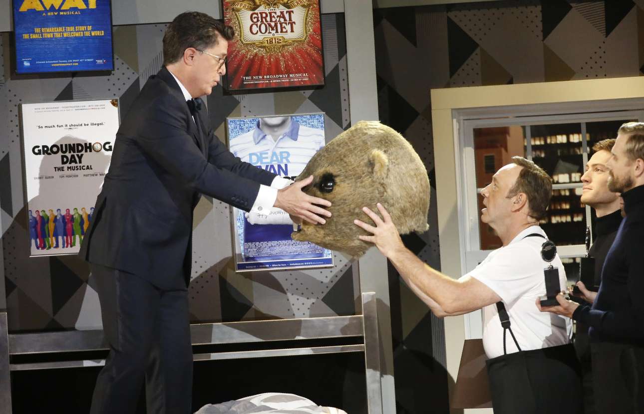 Ενα από τα σκετς στα οποία έπαιξε ο Σπέισι στο πλαίσιο της παρουσίασης των 71ων θεατρικών βραβείων Tony. Ως... κάστορας ο διάσημος τηλεπαρουσιαστής Στίβεν Κολμπέρτ