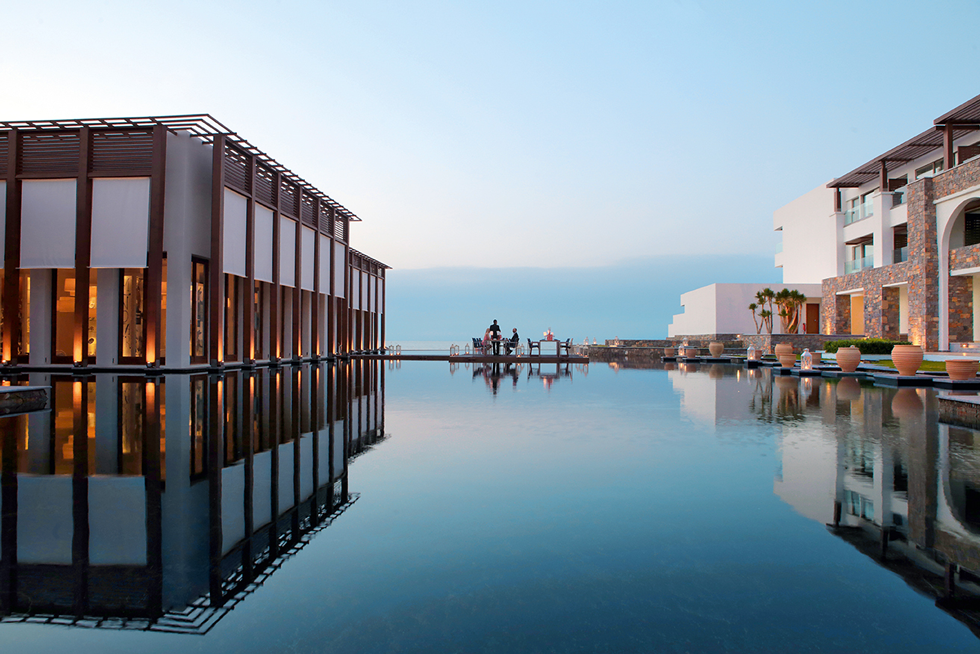 Το ξενοδοχείο Amirandes στις Γούβες στην Κρήτη περιβάλλεται από μία πισίνα - λίμνη, πάνω στην οποία δημιουργούνται υπέροχοι καθρεφτισμοί όταν πέσει ο ήλιος