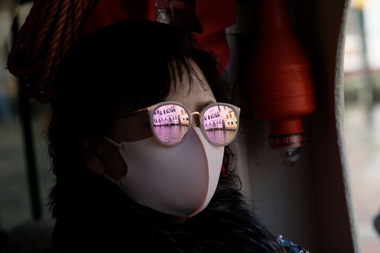 Και επειδή η Βενετία έχει ήδη δύο κρούσματα από τον κορονοϊό της Γουχάν, η κυρία της φωτογραφίας περιμένει τα άρματα φορώντας προστατευτική μάσκα. Και δεν είναι η μόνη...