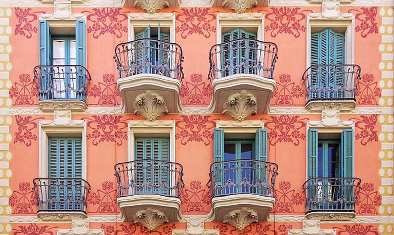 Εντονα χρώματα, περίτεχνα, καμπυλωτά κάγκελα και ζωγραφισμένα λουλούδια στους τοίχους του κτιρίου Casa Josep Creus Aymerich, το οποίο χρονολογείται στο 1914