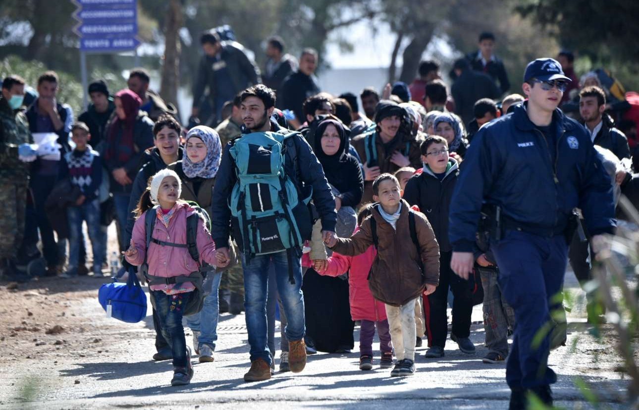 Οικογένειες προσφύγων μεταβαίνουν στο hotspot του Σχιστού το πρωί της 23ης Φεβρουαρίου