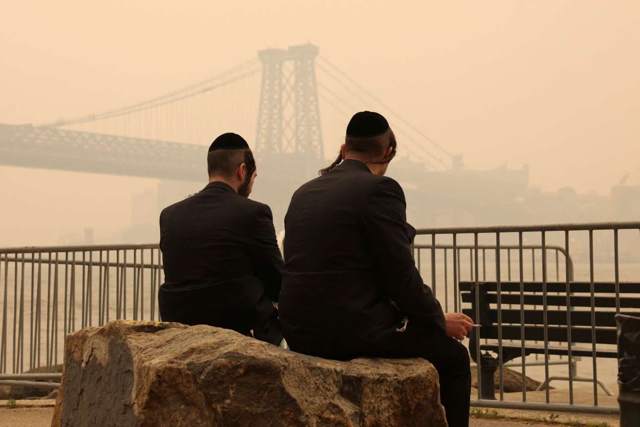 Δύο ορθόδοξοι ιουδαίοι καπνίζουν το τσιγάρο τους στον... όχι και τόσο καθαρό αέρα